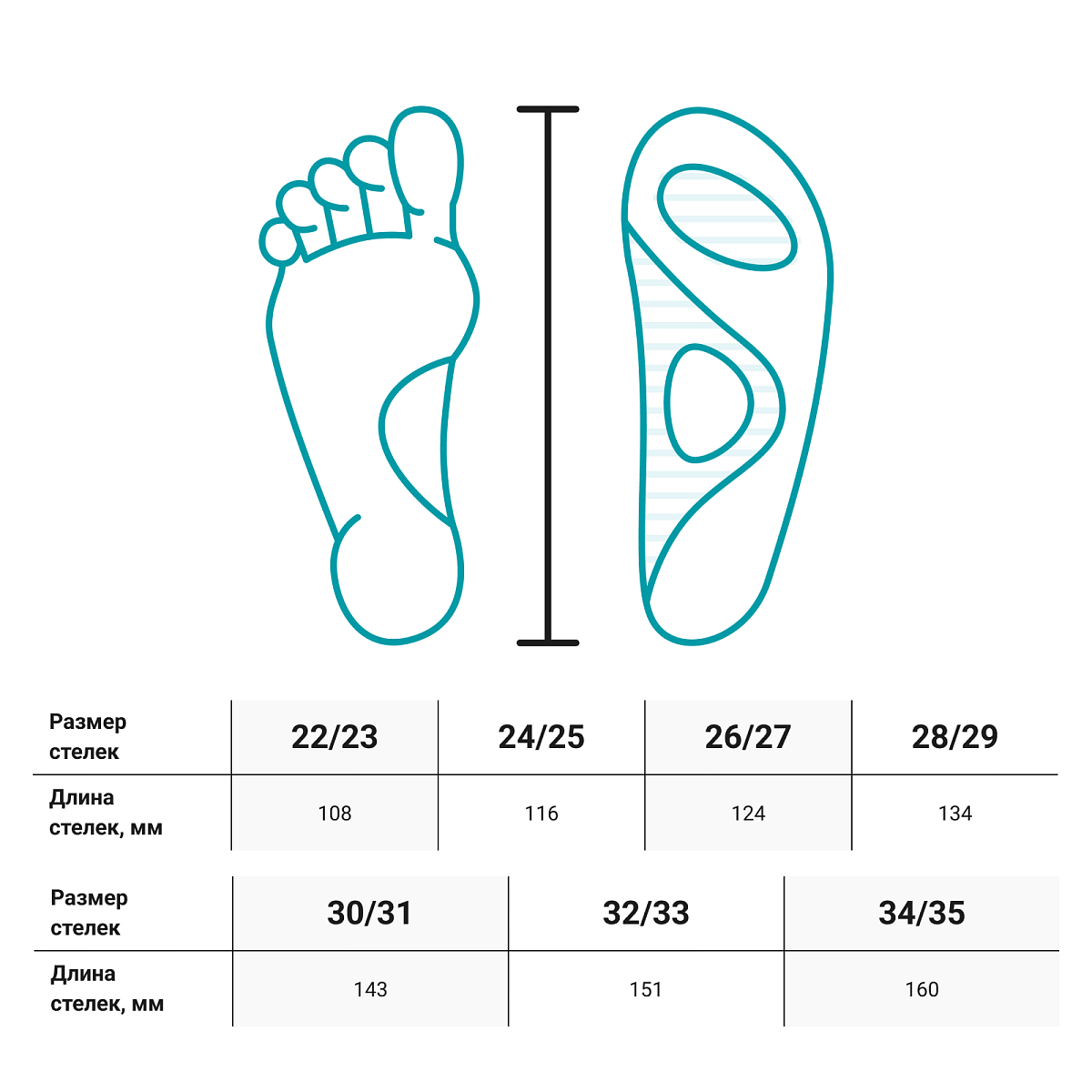 • плоская опорная поверхность стельки обеспечивает надёжную опору и равновесие при ходьбе.